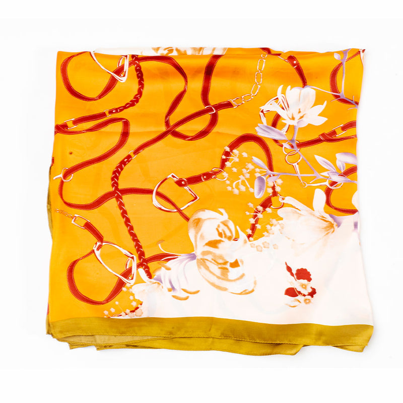 Eșarfă „Îmbrățișare florală”, 85 x 180 cm, portocalie, 100% mătase vegană