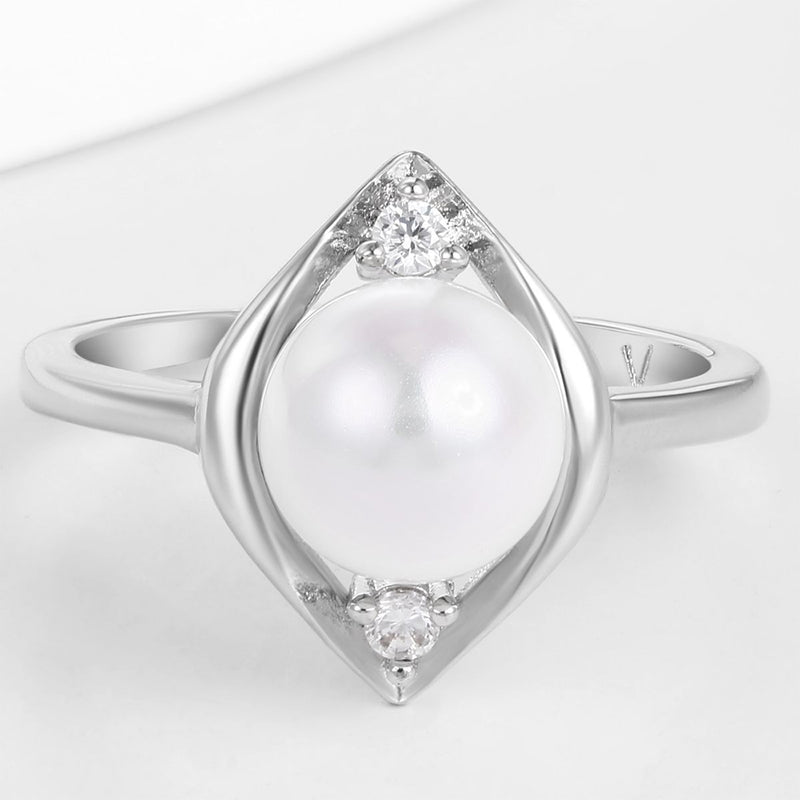 Inel din Aliaj Placat cu Aur ( 10 grame ) cu Perlă de cristal și Cristal Alb Emporia®