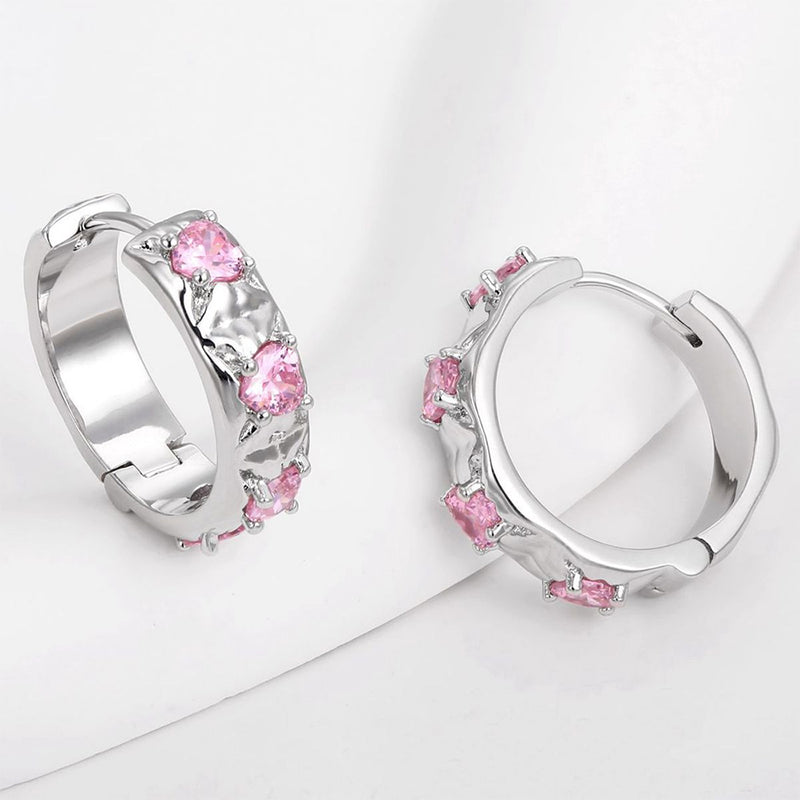 Cercei din Aliaj Placat cu Aur ( 10 grame ) cu Cristal Alb Emporia® și Cristal Roz Emporia®