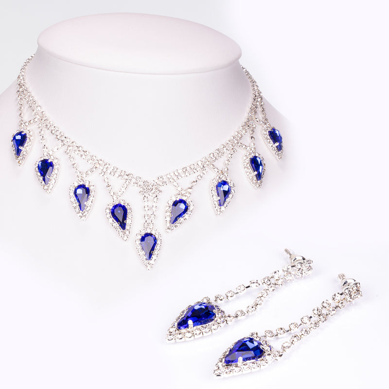 Set din Aliaj Placat cu Aur ( 44 grame ) cu Cristal Albastru Emporia® și Cristal Alb Emporia® ( Colier+Cercei )