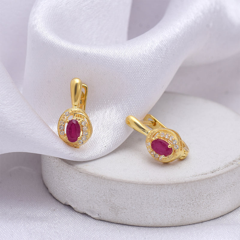 Cercei din Argint 925 Placat cu Aur ( 2.38 grame ) cu Rubin Malagasy și Topaz Alb 0.76 Carate