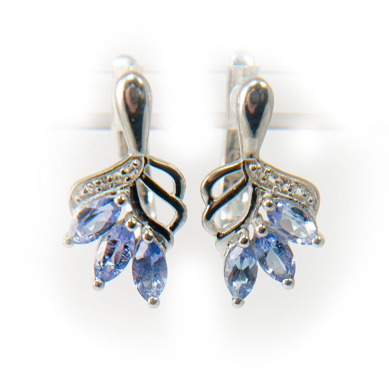 Cercei din Argint 925 ( 2.92 grame ) cu Tanzanit AAA și Topaz Alb 0.98 Carate