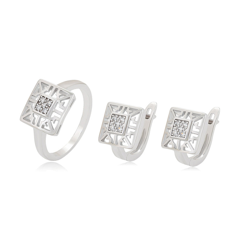Set din Aliaj Placat cu Aur cu Cristal Alb Emporia® ( Cercei+Inel )