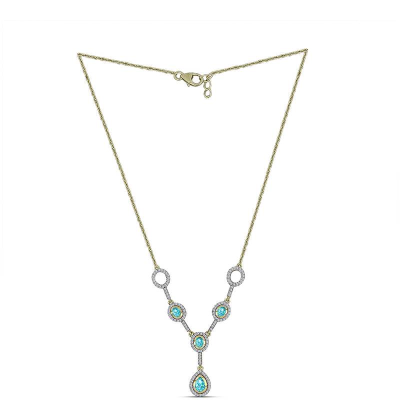 Colier din Argint 925 Placat cu Aur ( 6.24 grame ) cu Cuarț Paraiba și Topaz Alb 1.64 Carate