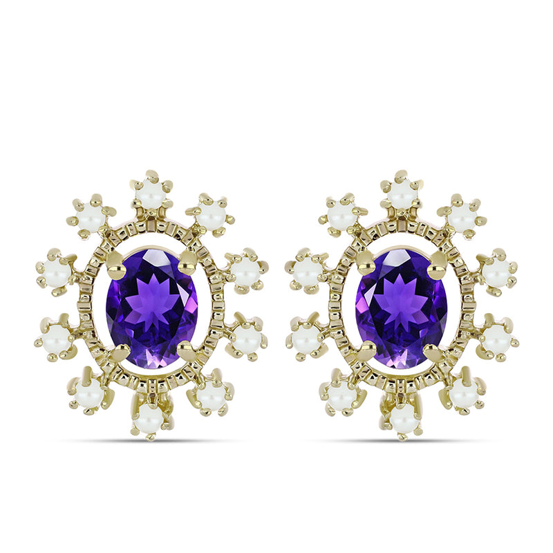 Cercei din Argint 925 Placat cu Aur ( 4.82 grame ) cu Ametist Marocan și Perlă de Apă Dulce Albă 3.11 Carate