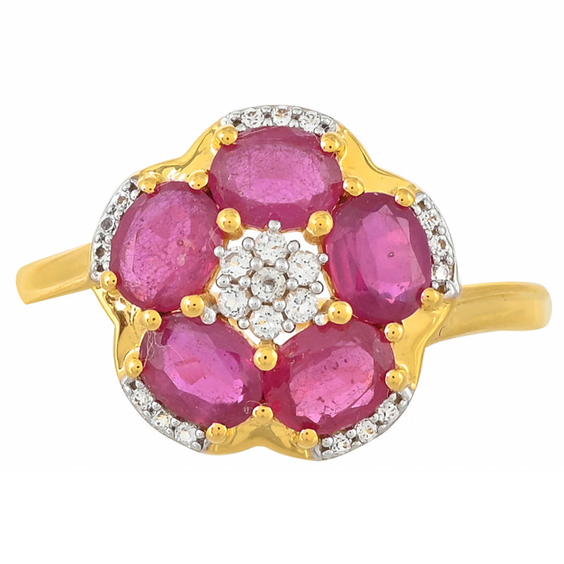 Inel din Argint 925 Placat cu Aur ( 2.41 grame ) cu Rubin Malagasy și Topaz Alb 4.01 Carate