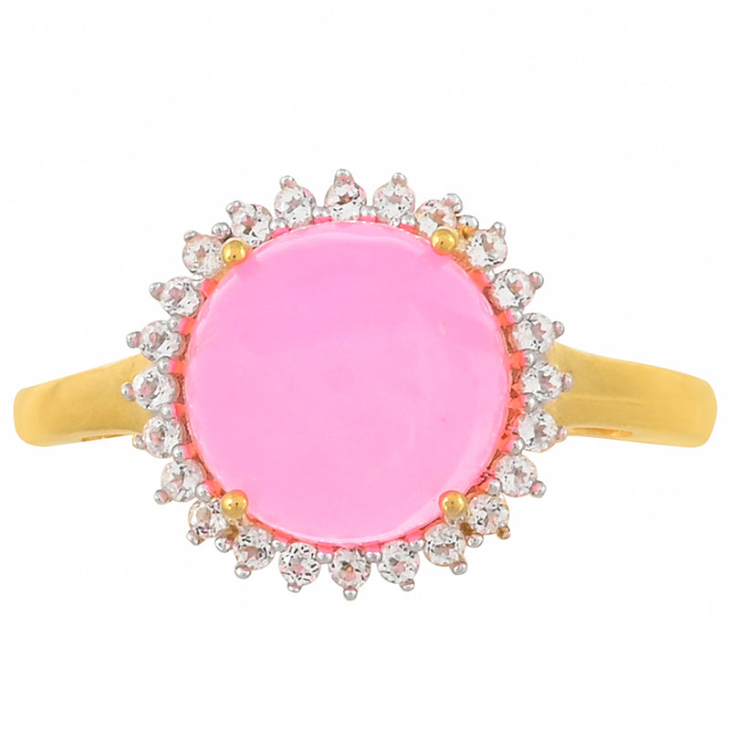 Inel din Argint 925 Placat cu Aur ( 2.48 grame ) cu Opal Etiopian Neon Roz și Topaz Alb 1.98 Carate